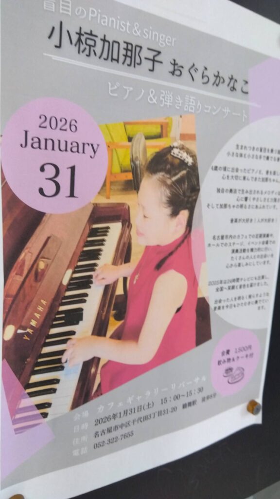 開催!2026.1.30 小椋加奈子 ピアノ&弾き語りコンサート!